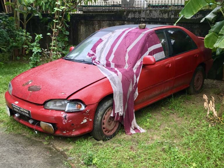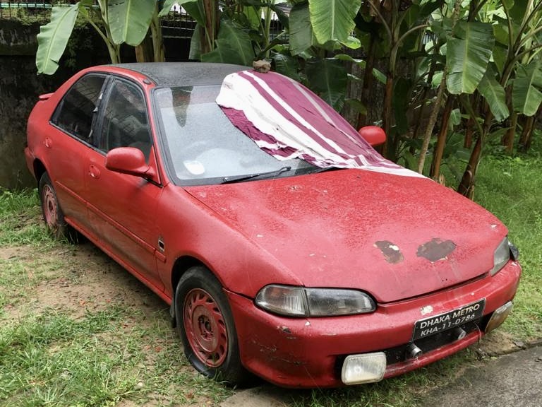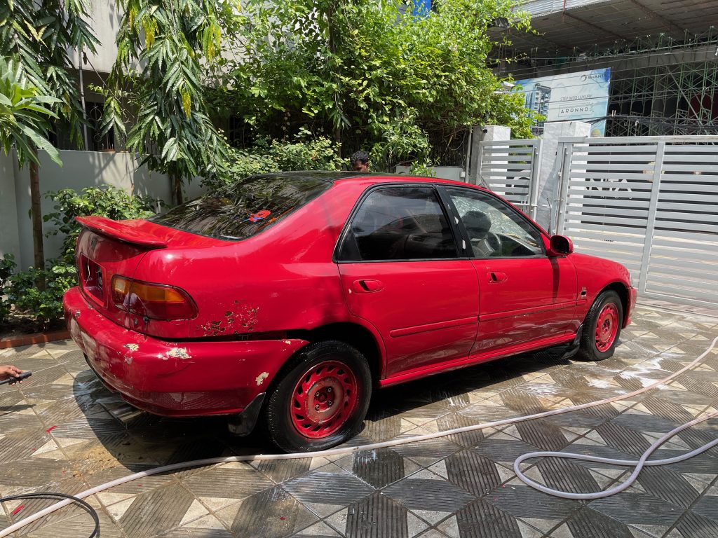 In 2021, out of the blue, a cousin sent me photos. He’d spotted the car in Sylhet — unmistakably the same one — and it was available. The images showed a very different Civic: tired, weather-beaten, sitting unused outdoors for nearly a decade. The red had faded, rust had begun to creep in, and time had not been kind.