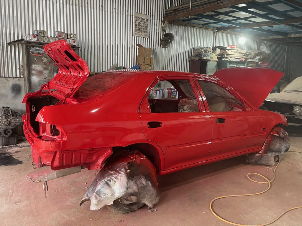 The rebuild began in June 2021 and concluded in December 2022. Anyone who’s restored a car knows this timeline isn’t unusual — parts take time to source, funds need to be gathered, and details demand patience. Friends helped along the way: badges sourced from Bangkok, headlights tracked down on eBay. It became a shared effort, just as it had been all those years ago.