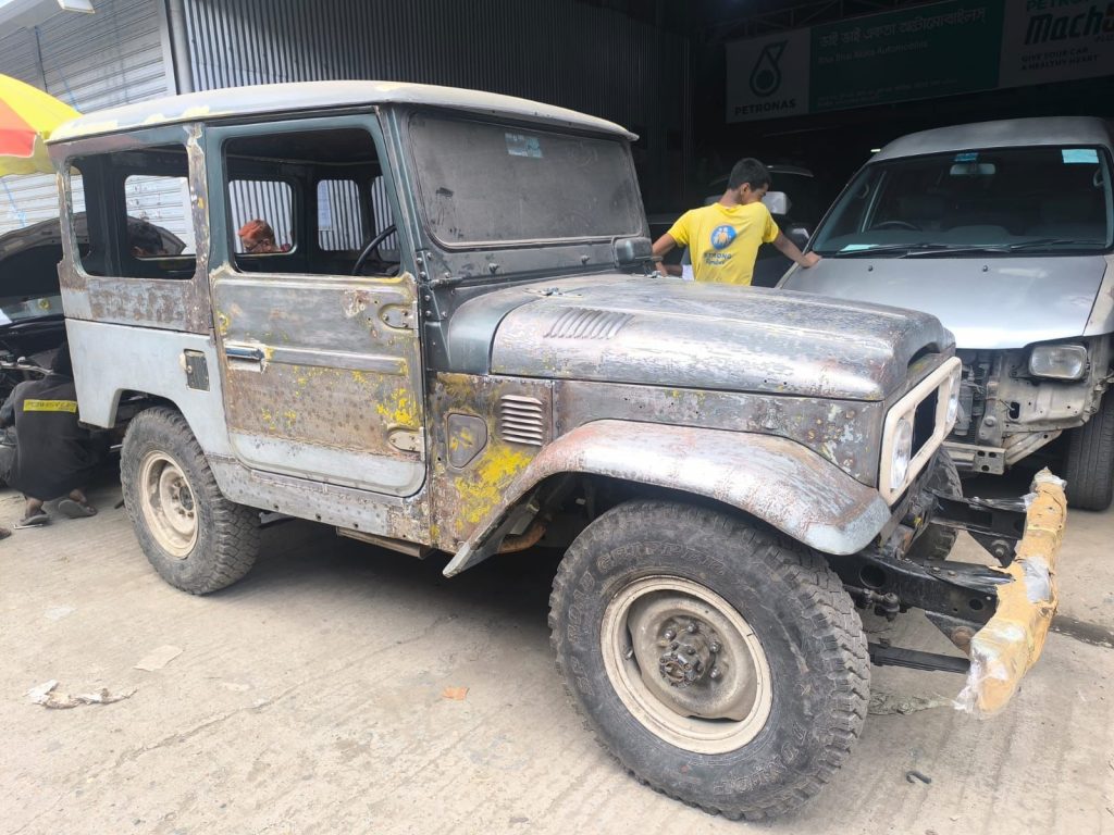 As with most restorations, the real time investment revealed itself in the bodywork. What initially appeared manageable gradually turned into a more involved process, largely due to rust—an unavoidable reality in Dhaka’s environment. Addressing it properly took time and patience, ultimately becoming the most challenging aspect of the build. The work was carried out at a trusted workshop already responsible for maintaining the owner’s company vehicles, reinforcing the importance of familiarity and reliability over experimentation when it comes to local restoration projects.
