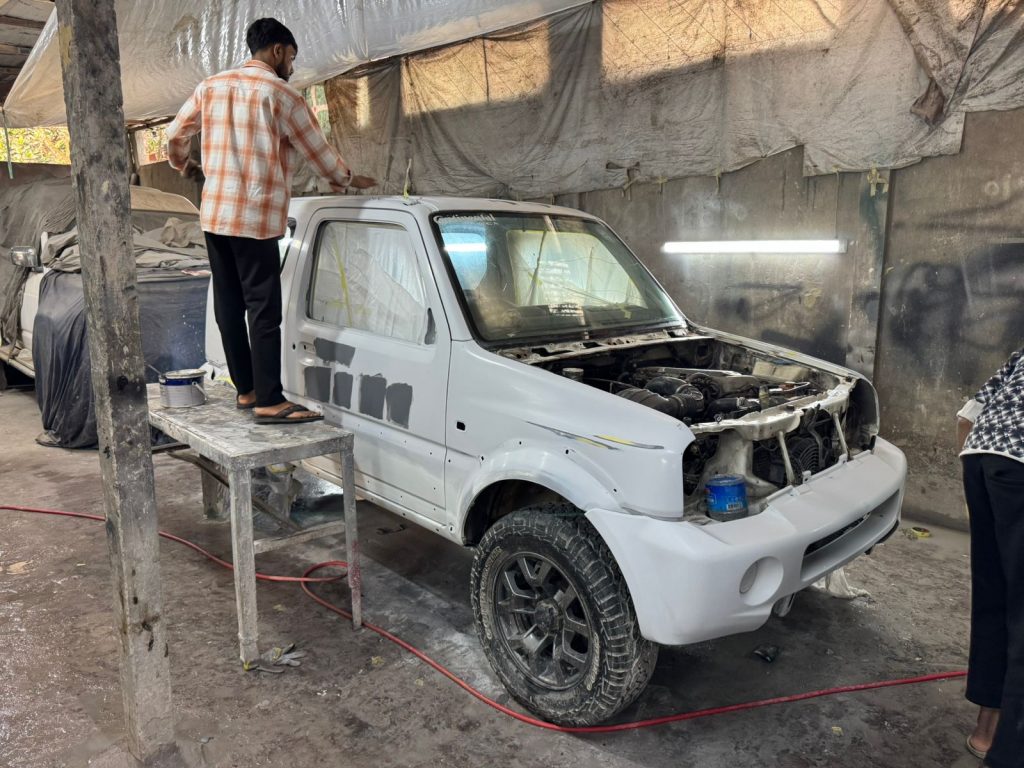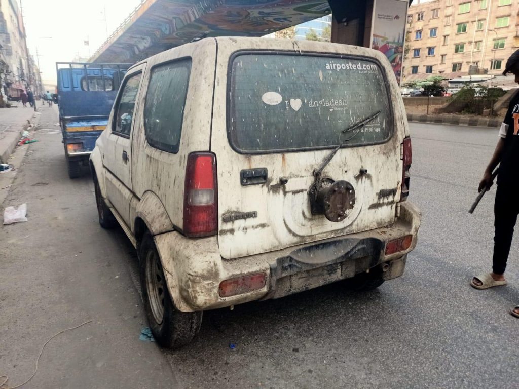 No pretence. No unnecessary bulk. Just a ladder frame, a small-capacity petrol engine, and the quiet confidence of a proper 4×4 system. Around the world, the Suzuki Jimny enjoys cult status — from Japanese mountain roads to Australian cattle farms and European green lanes. In Bangladesh, however, most live hard lives. This one may have lived the hardest of all.