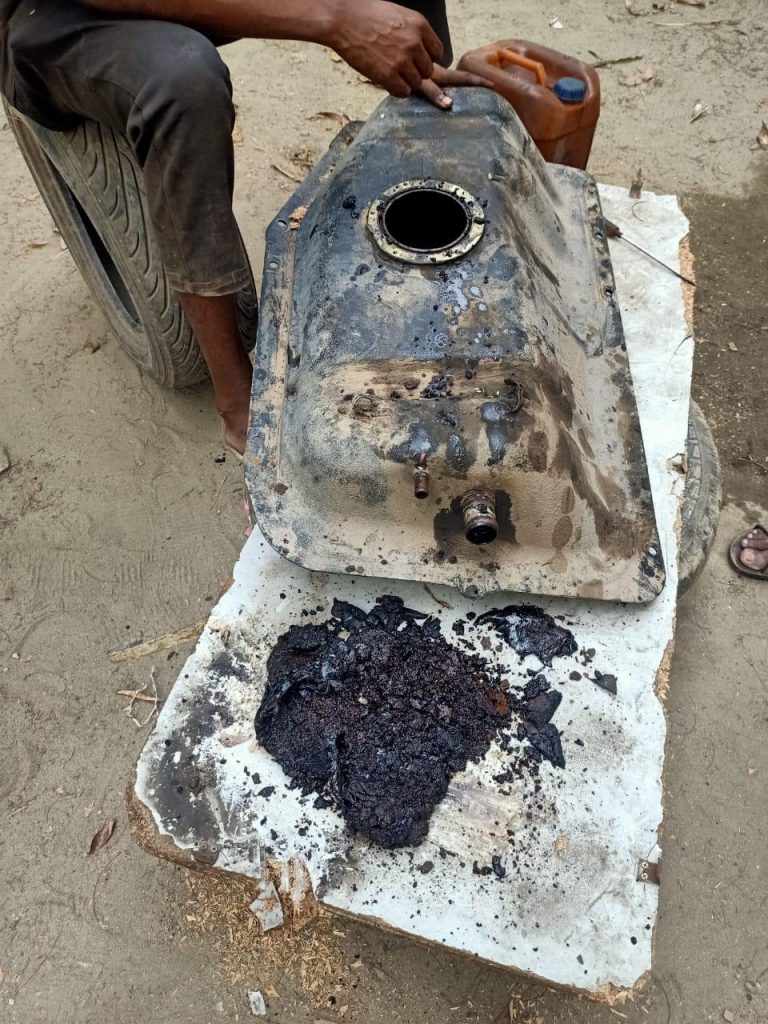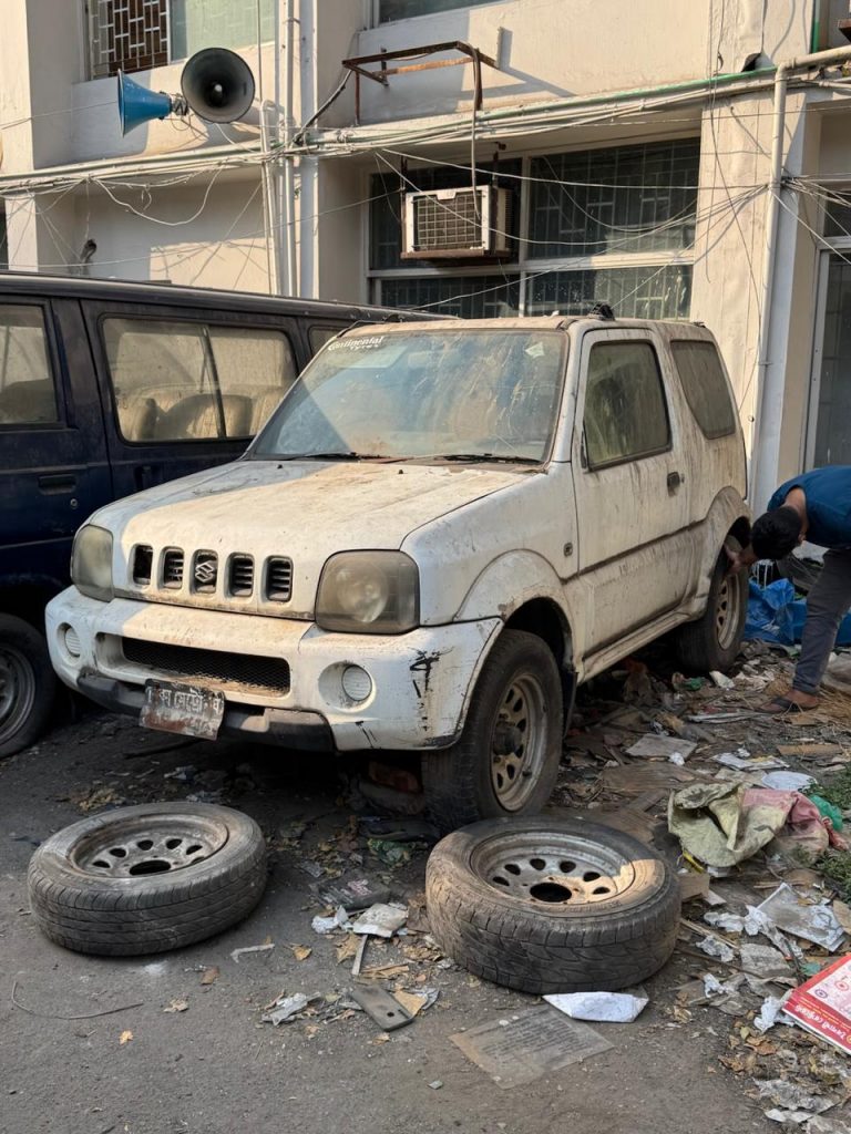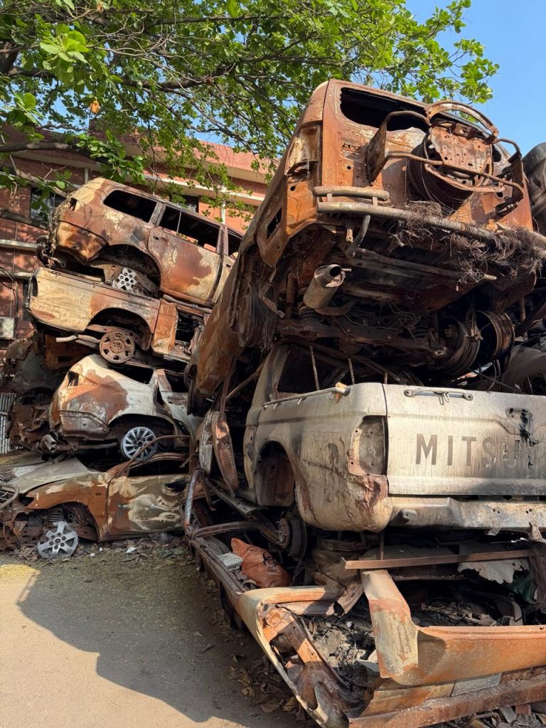 During the unrest of the July ’24 revolution , vehicles stored around it were burned to a crisp. Rows of metal reduced to twisted, blackened shells. Yet somehow, this tiny Jimny remained untouched. Smoke-stained, surrounded by wreckage — but alive.